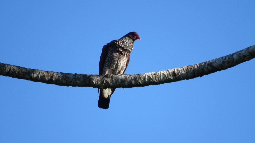 Al día siguiente, los cantos de las Codornices Moteadas (Spotted Wood-Quail) marcaron el inicio de nuestra pajareada, siendo acompañadas por la presencia del Saltator Listado (Streaked Saltator), la Paloma Escamada (Scaled Pigeon) y muchísimas aves de ese bosque. Durante la mañana fuimos testigos de una impresionante disputa entre tres machos de la Coqueta Crestiblanca (White-crested Coquette), sumado a la breve aparición de una de las aves más especiales de esta región, el tímido Mosquerito Pechirayado (Bran-colored Flycatcher). Para ese momento, llevábamos casi 90 especies y nos encontrábamos a las puertas del Cerro Pittier, un pico que nos llevó de los 1500 a los casi 1800 msnm.