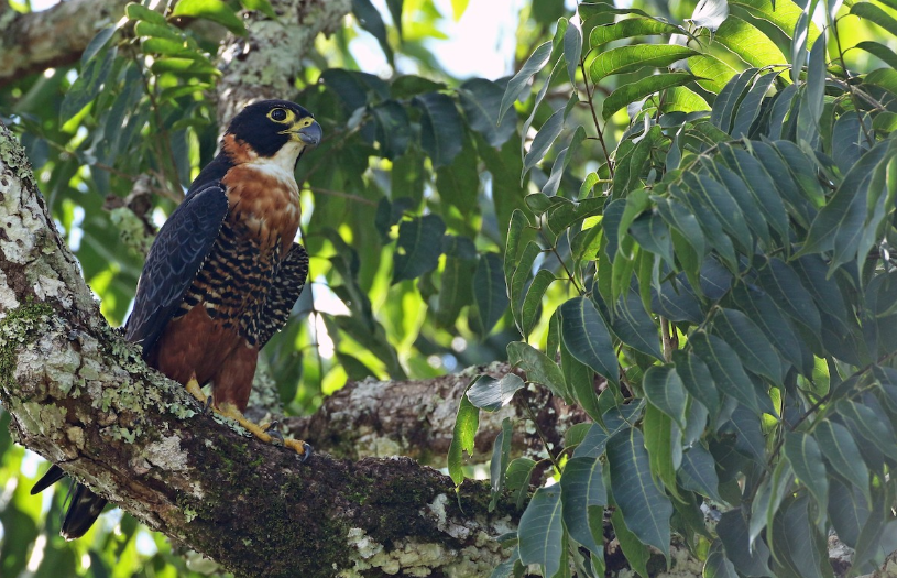 Un único registro histórico del halcón pechirrojo en los años de 1950¹ nos hace soñar con encontrarnos esta maravilla en nuestros bosques. Actualmente, esta especie se encuentra en estado de conservación “casi amenazada” y algunas de sus poblaciones se concentran en Guatemala, Belice y Suramérica.