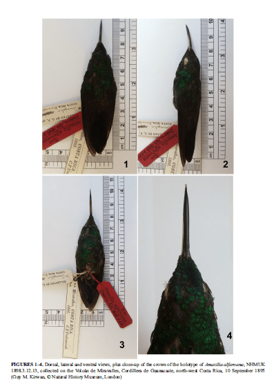 Guanacaste Hummingbird (Alfaro’s Hummingbird). Espécimen de museo. Tomado de: Kirwan & Collar (2016)