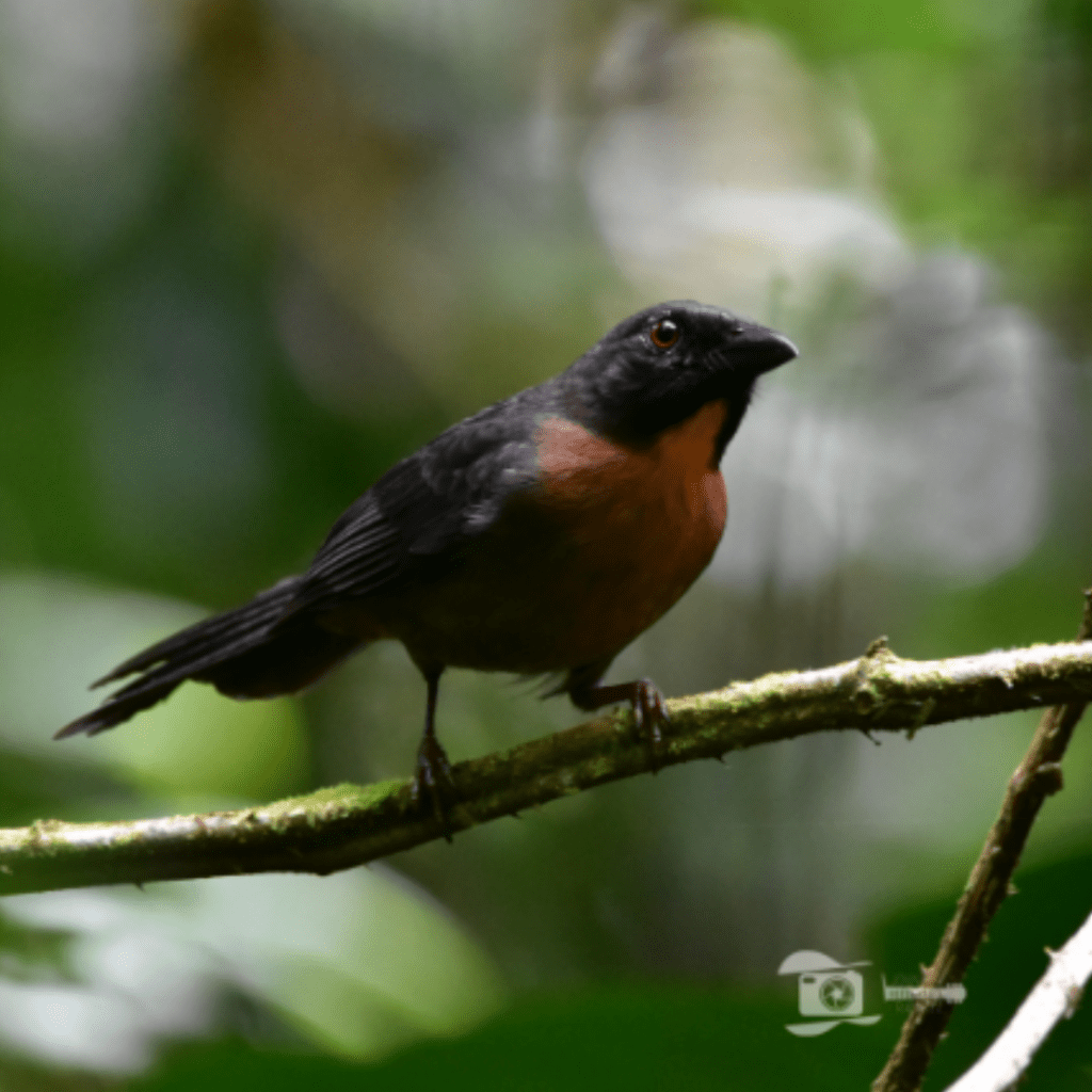 Otra ave endémica de Costa Rica se encuentra en el sur del país, ya que la tangara hormiguera carinegra (Black-cheeked Ant-Tanager) se delimita al Golfo Dulce y la Península de Osa. Este Cardinalidae está casi amenazado y se le suele encontrar en grupos pequeños que se mueven dentro del bosque muy húmedo.