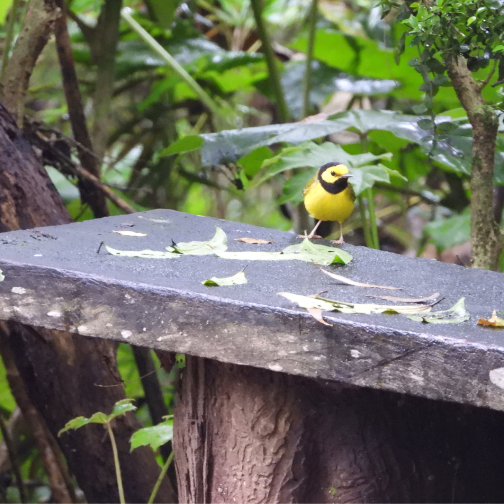 Por la tarde nos concentramos en el Parque Ecológico Cerro de Macuiltépetl, un oasis en medio de la matriz urbana de la ciudad. Este sitio tiene la particularidad de ser un cono volcánico extinto, por lo que sus senderos ascienden y bordean sus laderas. Algo que nos sorprendió de inmediato fue la gran cantidad de migratorios boreales que aprovechan este espacio, principalmente parúlidos. En total, logramos registrar catorce especies de esta familia, entre las que destacan el chipe cabeza gris (Nashville Warbler), los chipes de Magnolia (Magnolia Warbler) y un curioso chipe encapuchado (Hooded Warbler), un lifer más para mí.